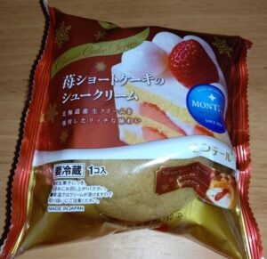 スーパーで買った苺のショートケーキのシュークリーム!ミルクケーキと苺ペーストの組み合わせが苺ショートケーキをうまくクリームで再現!その名の通りシュークリームで苺ショートケーキを楽しめます!見かけたら是非!