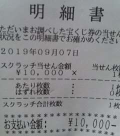 2019年9月4日登場のスクラッチで10000円当選しました!エロー・フォーにとってスクラッチで10000円当たったって初めての事です!当たった時は驚いた!