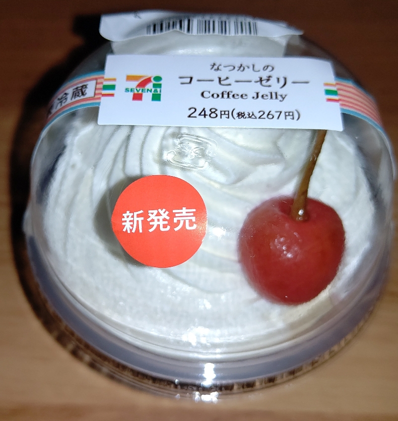 セブンのなつかしのコーヒーゼリー!たっぷり乗ったクリームと添えられたさくらんぼ!そして口に入れると昔ながら喫茶店を想像させる美味しさ!まさになつかしのコーヒーゼリーw見かけたら是非!