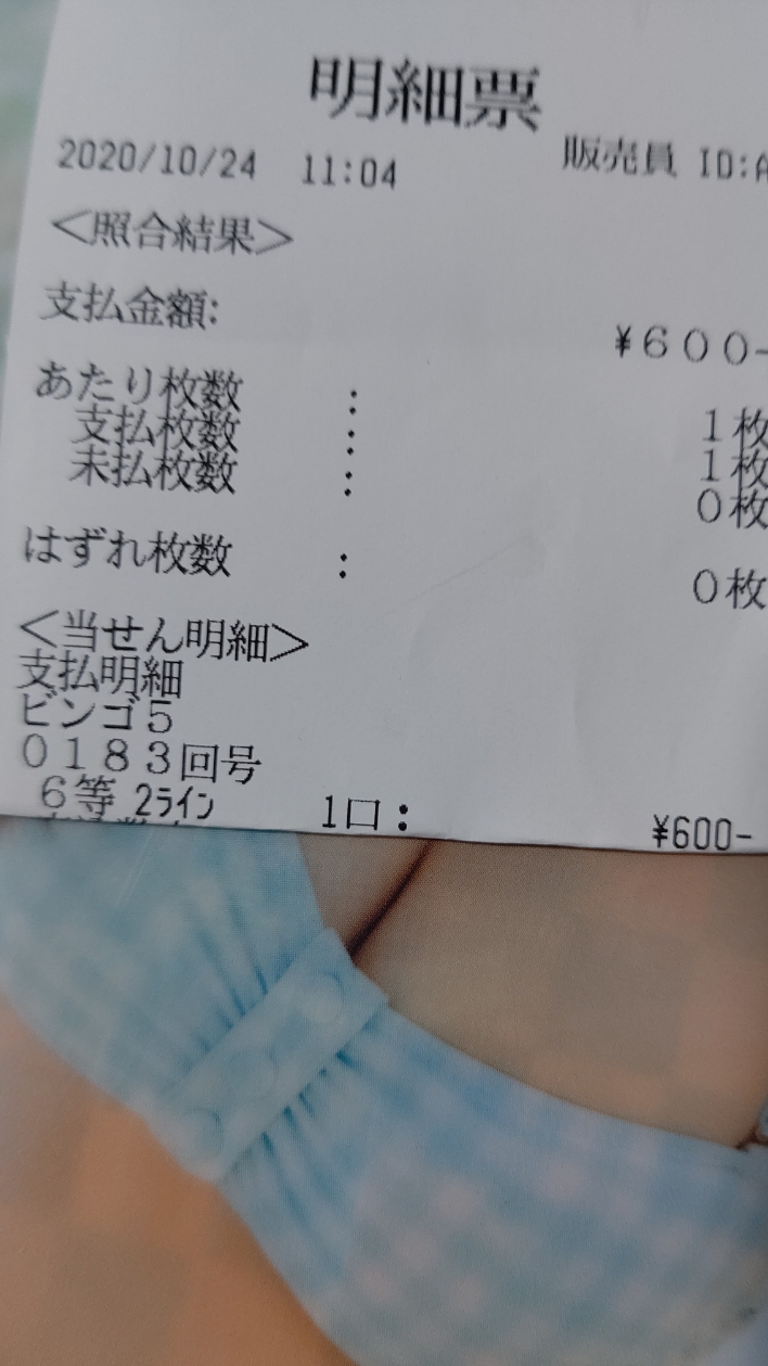 第183回ビンゴ5にて久々にビンゴ5当選!600円と金額は少額ですが当たったってだけで嬉しいですね!