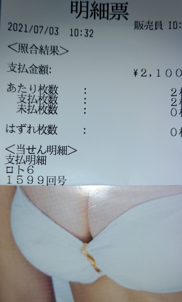 第1599回ロト6で1000円、第426回ロト7で1100円当たった!少額ではあるけど当たるとやっぱ嬉しいですね!