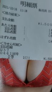 第441回ロト7で1500円当たった!ここのところ当たりから遠のいていたので少額とはいえ当たってくれて嬉しい!