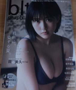 bltguaphvol.81の表紙をHKTの田中美久ちゃんが務めた!表紙からかわいらしさとボヨヨ~ンなおっぱいを活かした水着ショットを魅せてくれた美久ちゃん!グラビアでは夏を感じさせるショットをかわいらしさとボヨヨ~ンなおっぱいを活かした水着姿で魅せてくれた。水着になると思わず目に入ってしまうボヨヨ~ンなおっぱいがもうたまらずこのおっぱいでおちんちん気持ちよくしてもらいたいってエッチな事を考えてしまう!美久ちゃんだけでは終わらないNMBメンバーも水着グラビアに参戦!参戦したのは加藤夕夏ちゃん、川上千尋ちゃん、上西怜ちゃん、前田令子ちゃん、貞野遥香ちゃん、隅野和奏ちゃんの6人が1ページずつですが性欲を掻き立てる水着グラビアを魅せてくれた。6人ともエッチな体してたまりません!さらに付録には美久ちゃんの水着ポスター3種が付いてきた!またセブンネット限定の表紙があったということでエロー・フォーはそちらを購入!美久ちゃんやNMBメンバーのエッチな水着ショットを楽しみたい方bltguaphvol.81を是非!