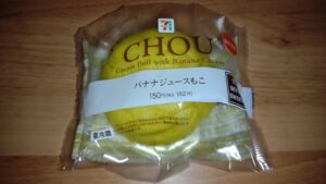 セブンのバナナジュースもこ!クリームがバナナジュース風味というちょっと変わったシュークリーム!バナナジュースって謳ってるけど味はバナナだろって思って食べてみたら絶妙にバナナジュースだった。このちょっと変わったシュークリーム是非1度お試しを!