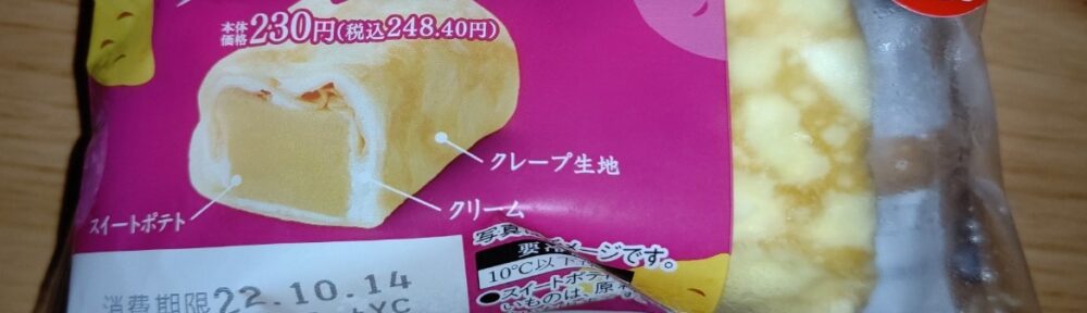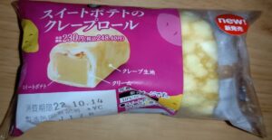 ミニストップのスイートポテトのクレープロール!クレープの中がスイートポテトという豪華な1品!ホイップクリームも入ってます!クレープの生地とクリームがスイートポテトの甘味をさらに引き立てる!スイートポテト好き必見!