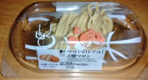 ローソンのマロンのトリコ!3層マロン!モンブランと通常のマロンクリームと栗の食感を味わえるクリームと3つの食感を楽しめるマロンスイーツ!マロンスイーツ好きにはたまらない1品だ!気になってる方是非!