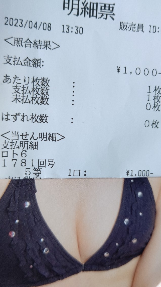 第1781回ロト6にて1000円当たりました!少額ですが当たってくれて嬉しいです!