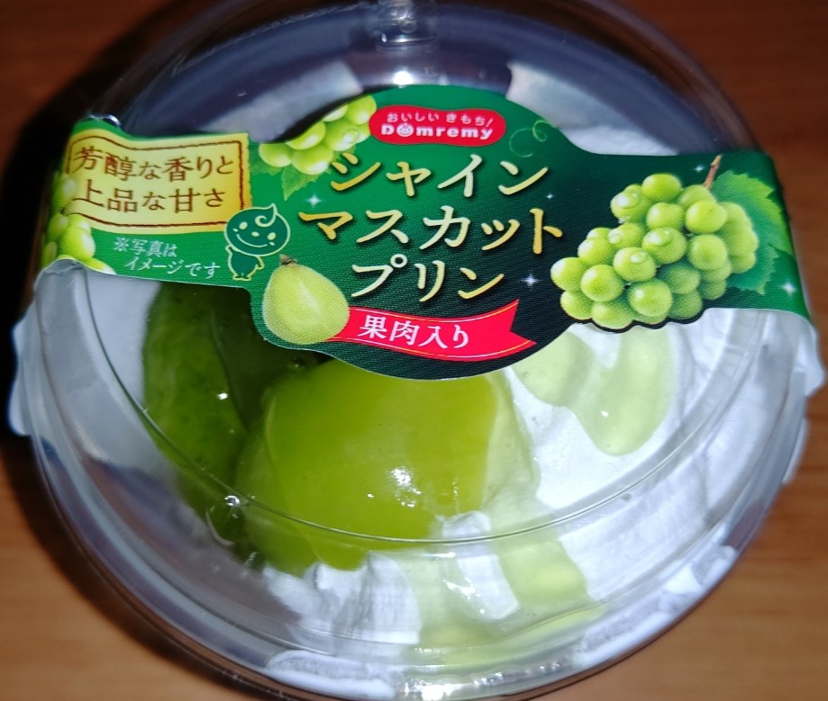 スーパーで見つけたシャインマスカットプリン!シャインマスカットの果肉も入りその名の通りゼリーとプリンにもシャインマスカットが使われている!シャインマスカットの味が濃厚なゼリーとシャインマスカット味に仕上がったプリン!シャインマスカット好きにはたまらない!見かけたら是非!