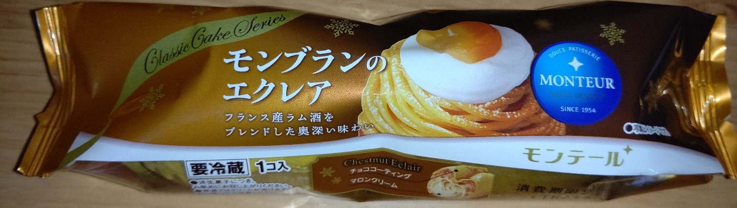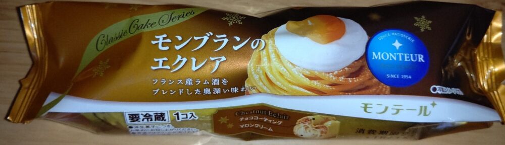 スーパーで見つけたので買ってみたモンブランのエクレア!コーティングされてるチョコも中のクリームもマロンが使われている!いい具合にマロンの味が濃厚でした!見かけたら是非!