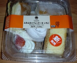 ファミマのふわふわシフォンケーキ いちご!真ん中に苺のホイップクリームそしていちごとホイップクリームが添えてありシフォンケーキを豪勢に積み込んだシフォンケーキ好きにはたまらない豪華な1品!シフォンケーキもふわふわしてます!クリームはほんとに脇役です!気になってた片是非!
