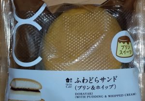 ローソンのふわどらサンド(プリン&ホイップ)!フワッとした生地にプリンとホイップクリームを挟んだ洋風のどら焼きな感じだ!プリンはカスタードプリンでしっかりしてます!フワッとした生地との相性も抜群!気になったる方是非!