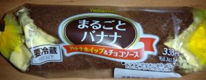 ヤマザキのまるごとバナナ バナナホイップ&チョコソース!まるごとバナナのスポンジケーキがチョコ色になりホイップクリームもバナナクリームになりチョコソースも混じりまるでチョコバナナがケーキになった感じの1品!もちろんバナナも入ってます!姿を変えたヤマザキのまるごとバナナ見かけたら是非!