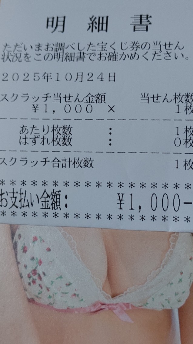 10月22日に発売したスクラッチにて1000円当たりました!久々にエログでエログらしくいい報告できました!少額でも当たってくれて嬉しいです!