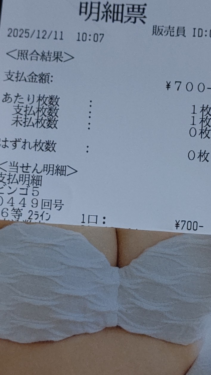 第413回ビンゴ5にて700円当たりました!前回ビンゴ5当たった時と同じ金額!たとえ少額でも当たったら嬉しいですね!