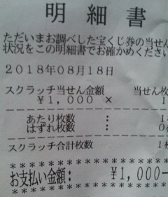2018年8月15日登場のスクラッチで1000円当選しました!当たると嬉しいですね!