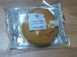 セブンのプリン&ホイップ生どら!中にはカスタードプリンがぎっしり詰まっている!それをホイップでつつみさらにどら焼き生地で挟んでいる!このカスタードプリンはハマる人はハマルるかも!気になったる方は是非!